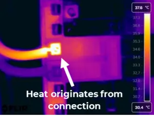 Anomalies, such as loose connections, will have a concentrated heat source where the compromised connection is.